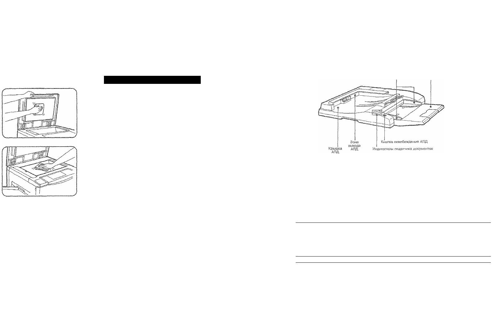 Пятна, ¡имеющиеся на стекле и крышке для докумен