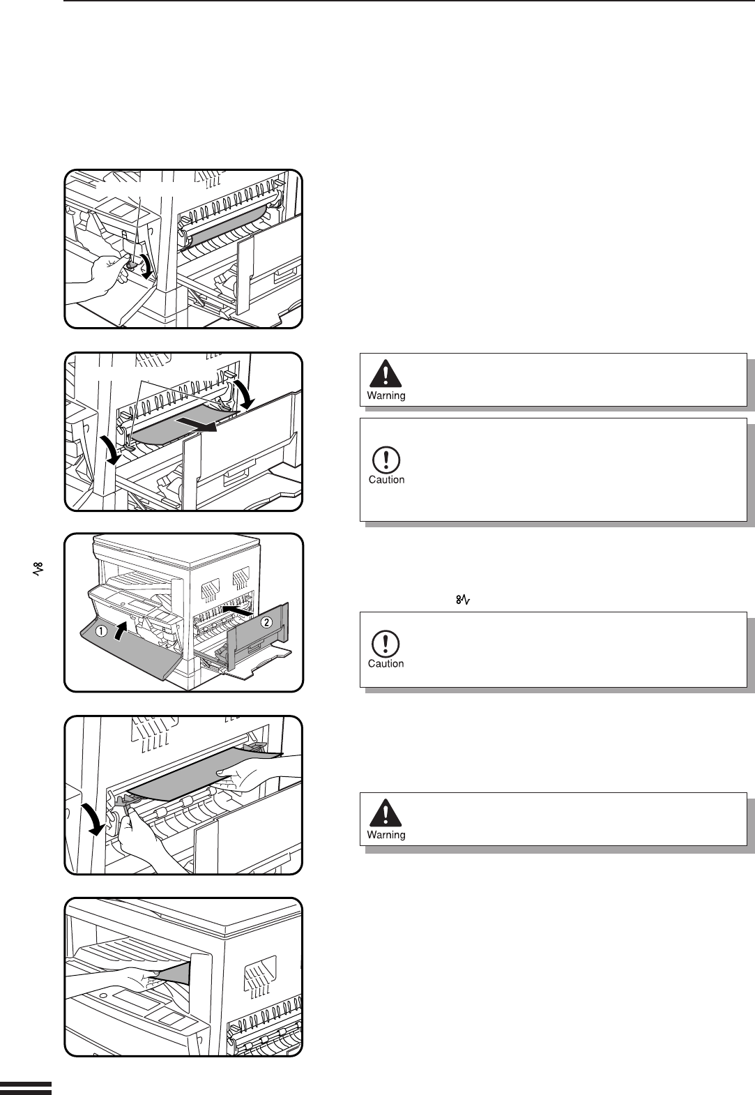 on either side of the guide and remove the misfed paper.