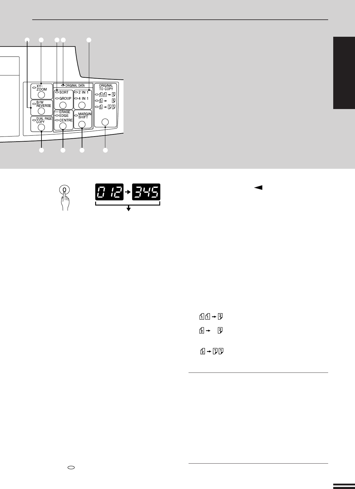 #1 DUAL PAGE COPY key and indicator (p. 25)