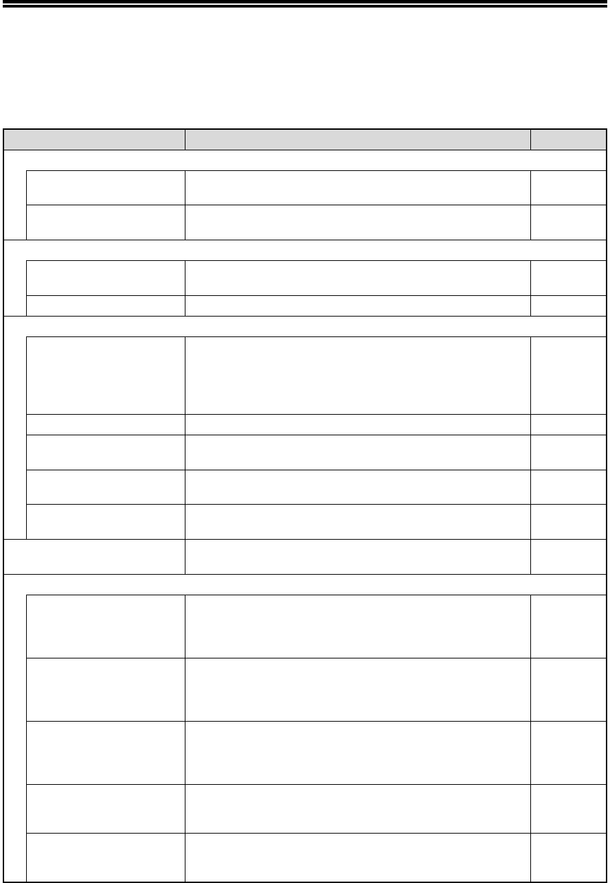 Menu item Settings (factory default setting appears in bold) Page