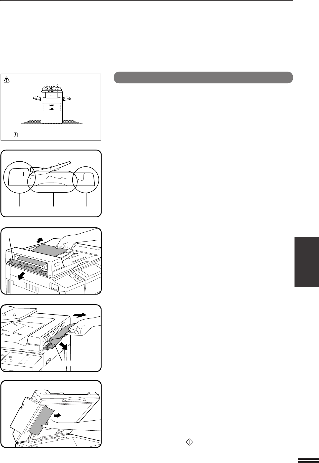 When the RADF misfeeds an original sheet, the copier will stop and the