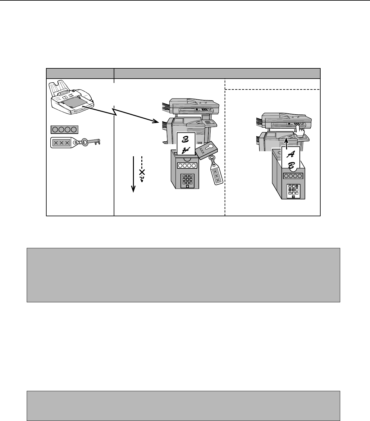 restricts access to the box, and received data can only be printed by someone who knows the print PIN. (Personal