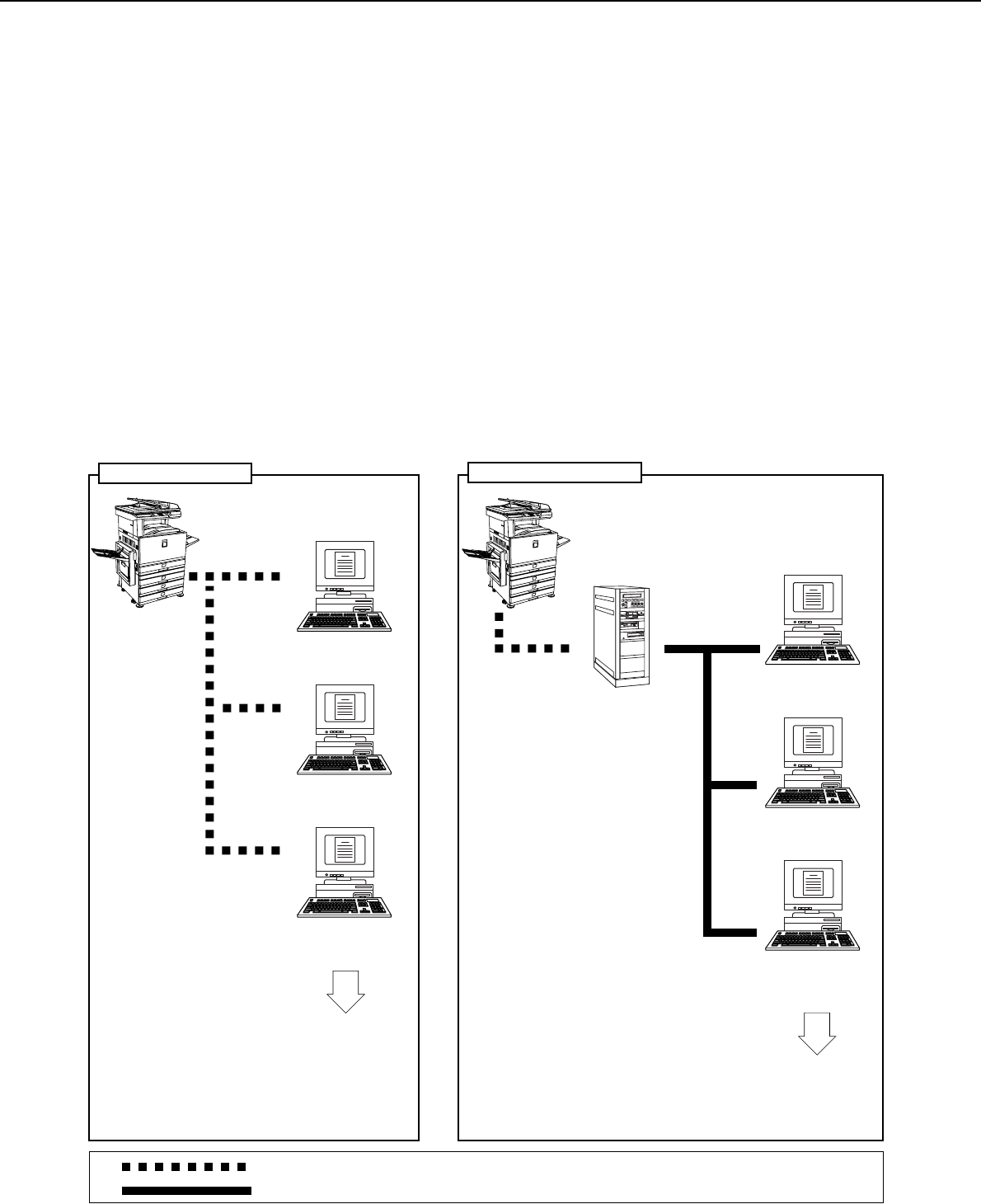 This manual explains peer-to-peer and server-client network connections in a Windows environment. If the machine