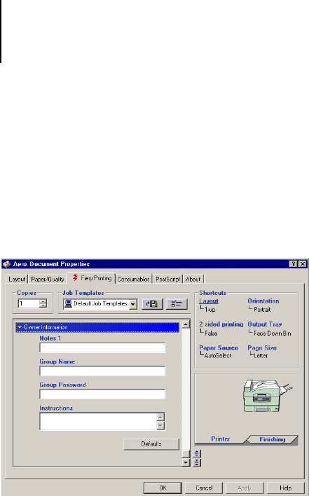 Options dialog box. The Group Name appears in the job’s Notes 2