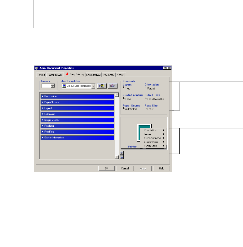 1. From the Fiery Printing tab, position your cursor over the print