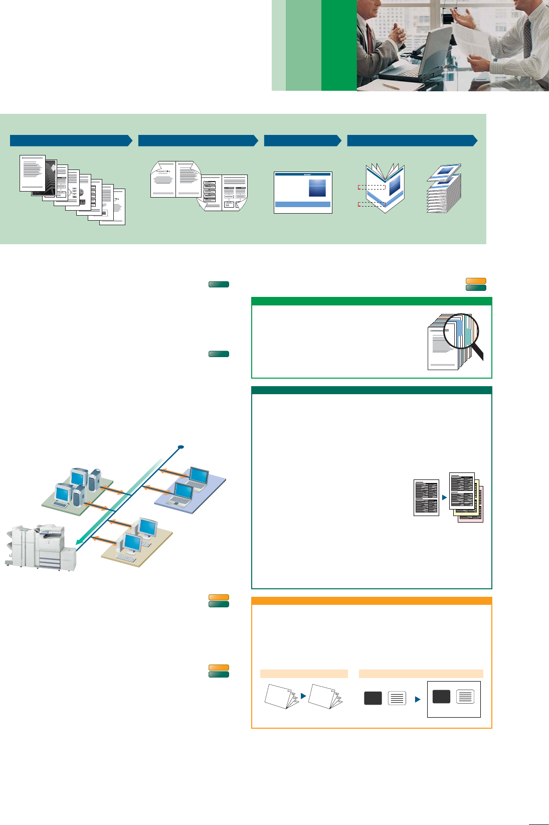 Multi-page document (copy or print) Booklet making Inserter (option) Saddle Stitch Finisher (option)