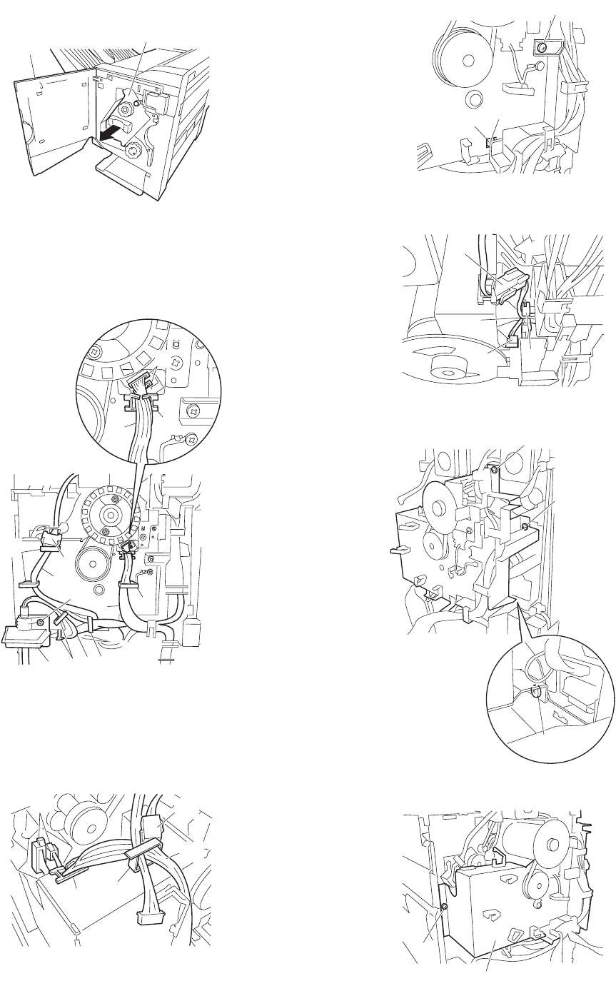 9) Remove the screw [15], and free the claw [17] of the harness guide