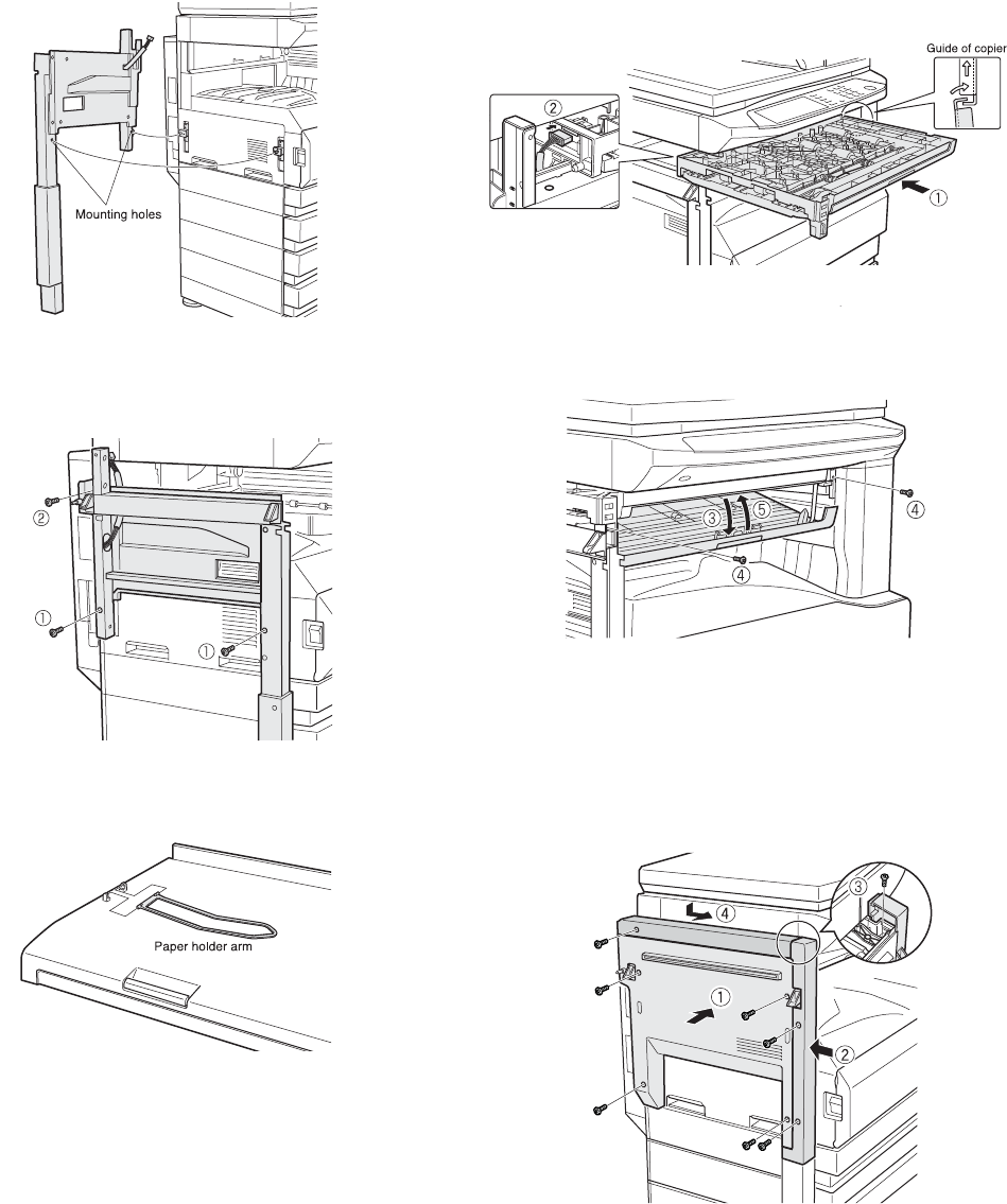 <1>Use two screws A (M4 x 10) to secure the unit to the copier.