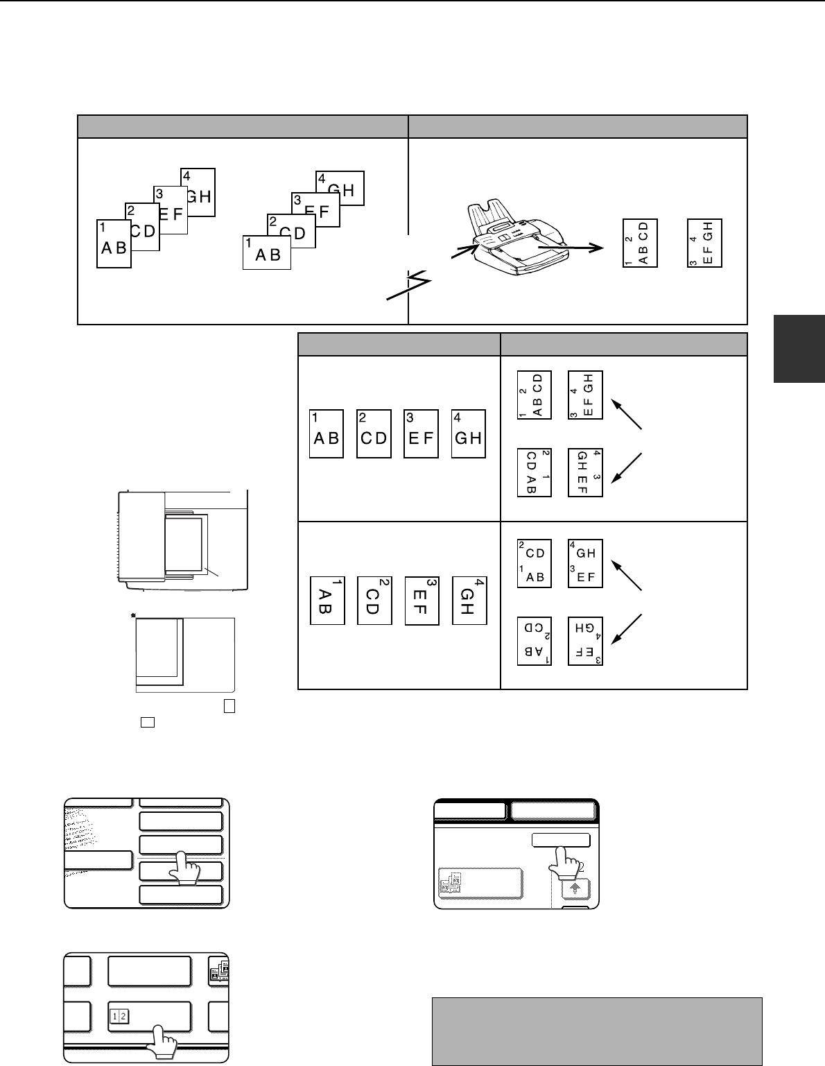 This function allows you to reduce the size of original pages by one half to fit two pages evenly on one page when sending a fax.