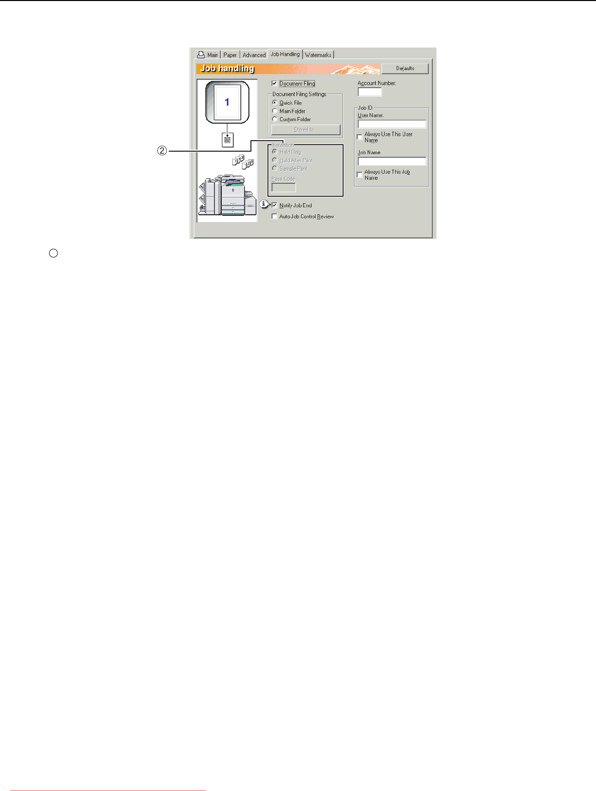 SELECTING PRINTING FUNCTIONS Settings in the [Job Handling] tab (continued)