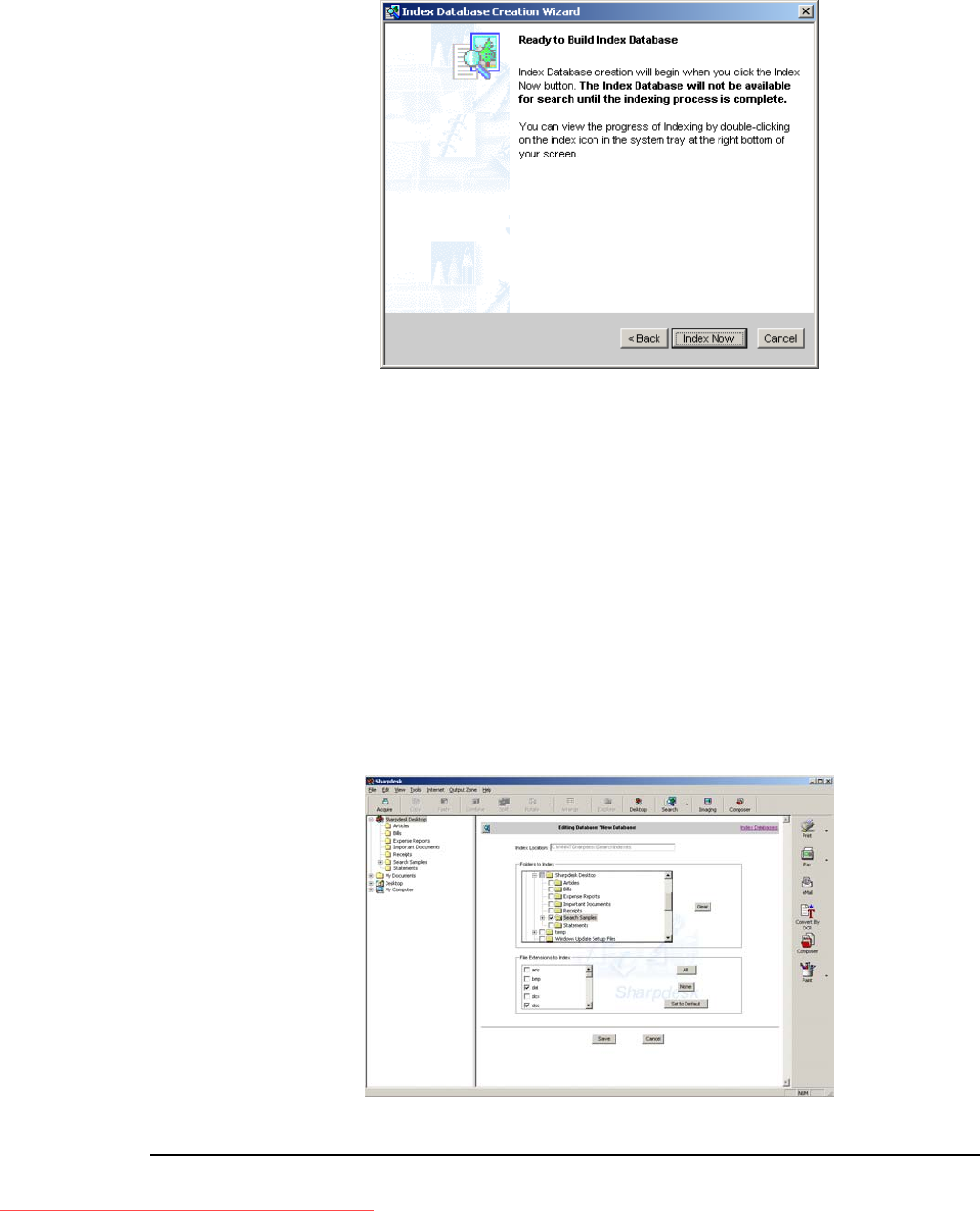 To create the index database now, select Build Index Database now and click Next.