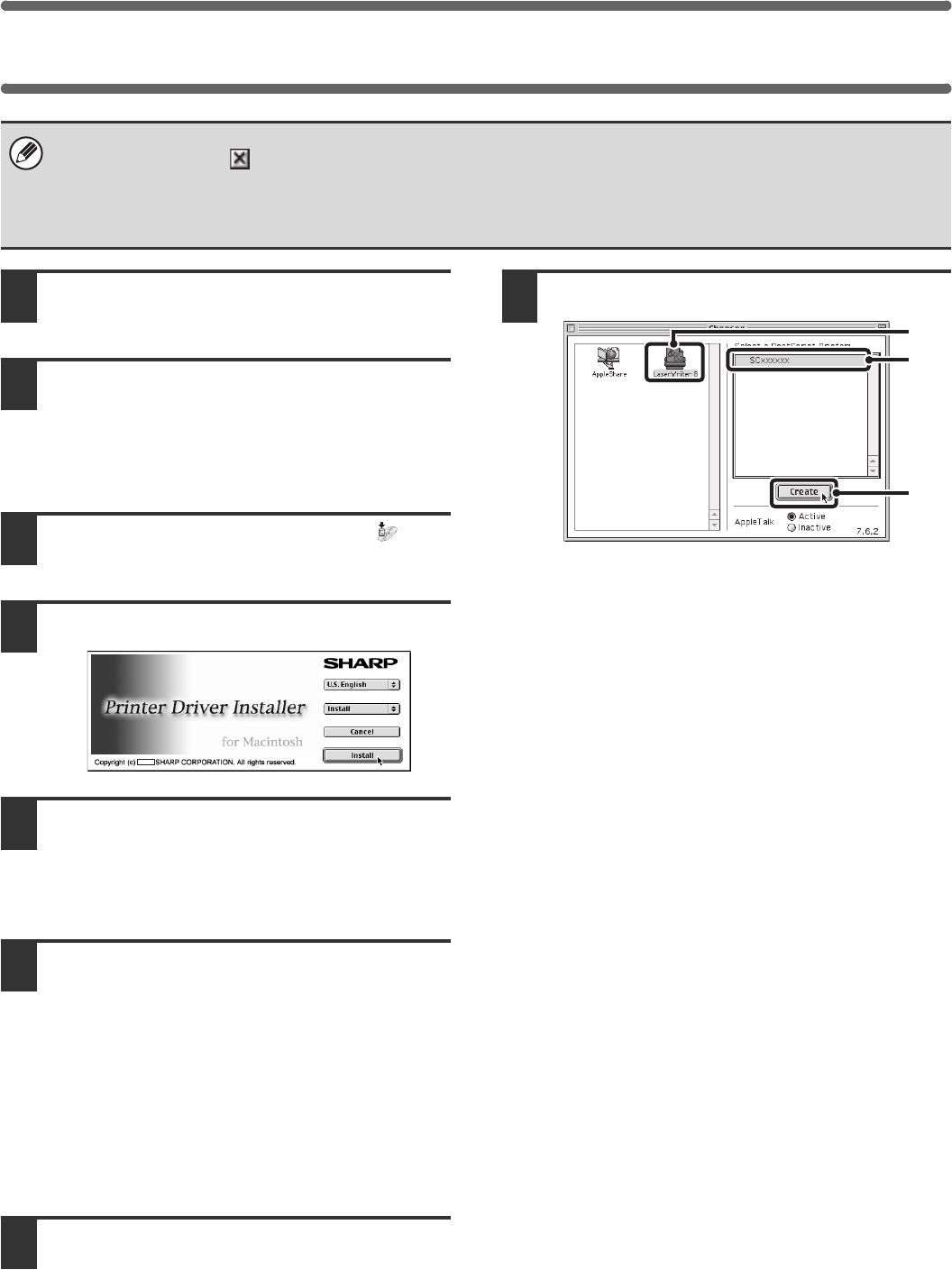 • If you are using Mac OS 9.0 to 9.2.2, make sure that "LaserWriter 8" has been installed and that the "LaserWriter 8"