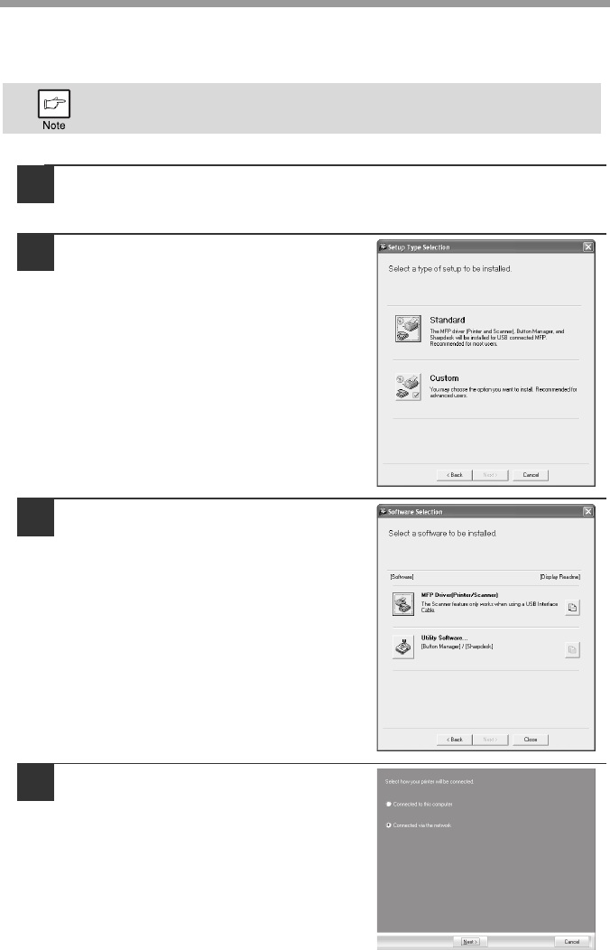 If the machine will be used as a shared printer on a network, follow these steps to