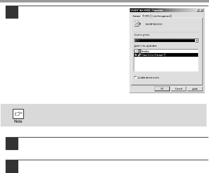 Select "SC2:" from the "Scanner events" pull-down menu. Select "Sharp