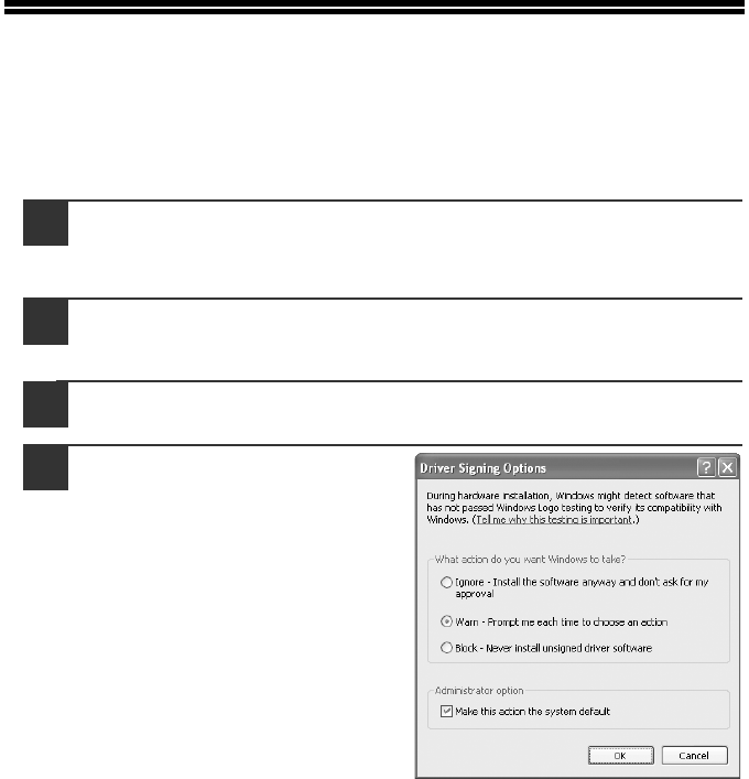 Click the "Hardware" tab and then click the "Driver Signing"