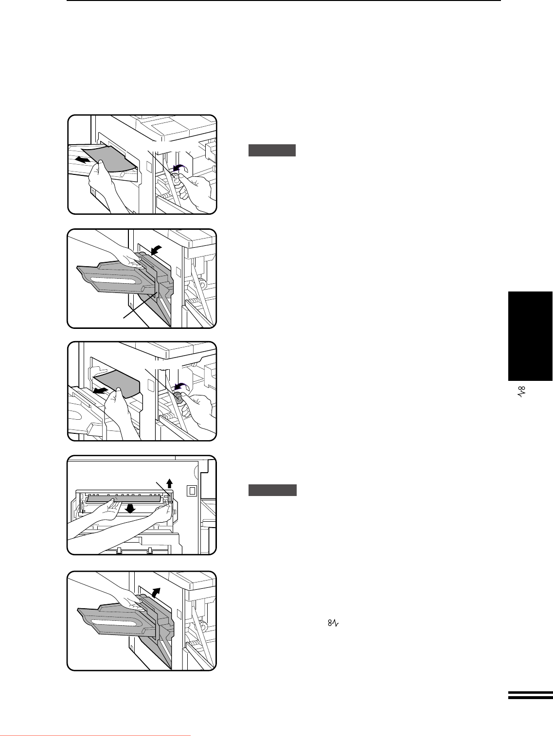 The fusing unit is hot! Be sure to touch only the green tab or the