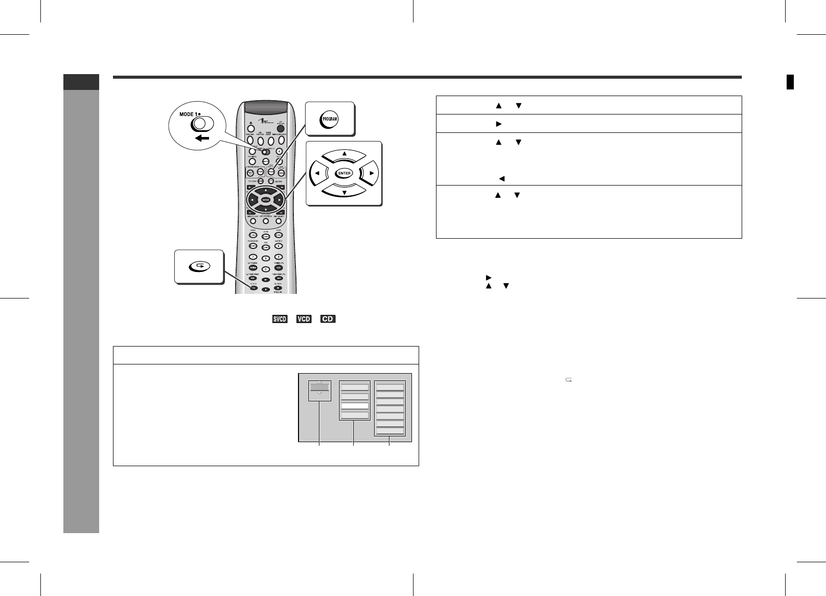 When playing SVCD or VCD, cancel the P.B.C. (playback control) (see page 32).