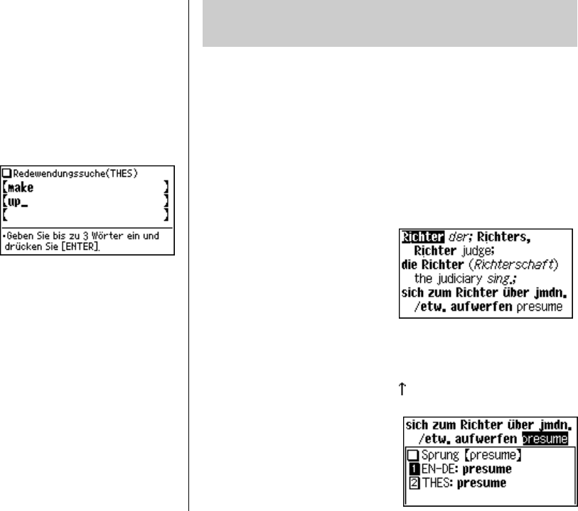 , um den Cursor auf dem Eintrag „Redewendungssuche” zu platzieren, und