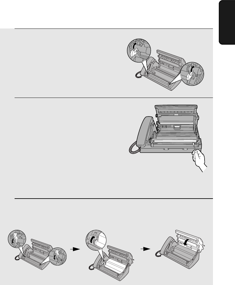 4 Flip down the green levers on each side of the white roller. Rotate the