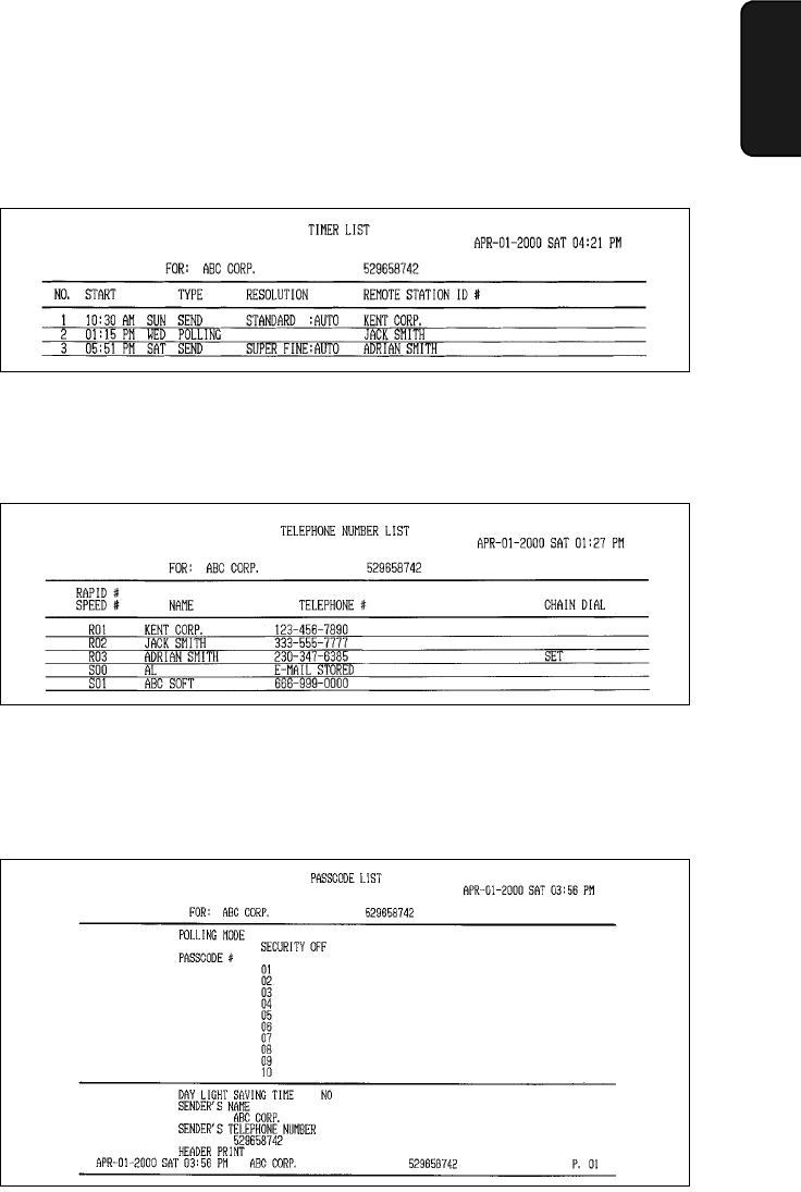 telephone number as entered in the machine, and a sample of the header