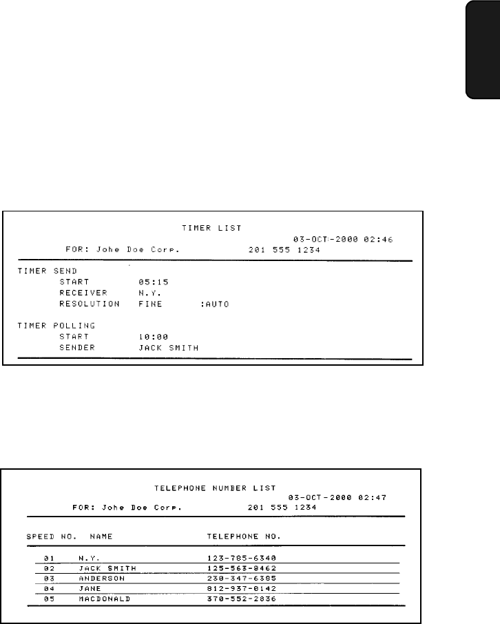 This list shows the fax and voice numbers which have been stored for