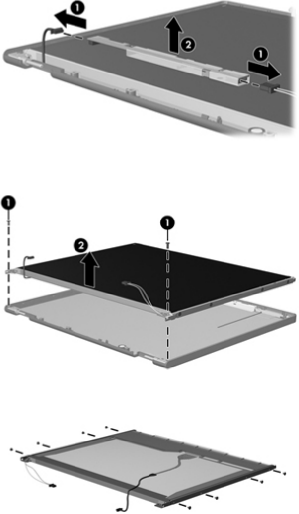 5. Remove all screws (1) that secure the display panel assembly to the display enclosure.