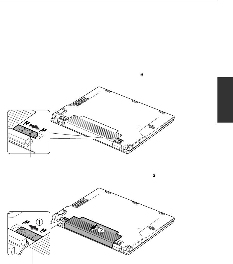 3. Slide the battery stopper to the unlocked position (
