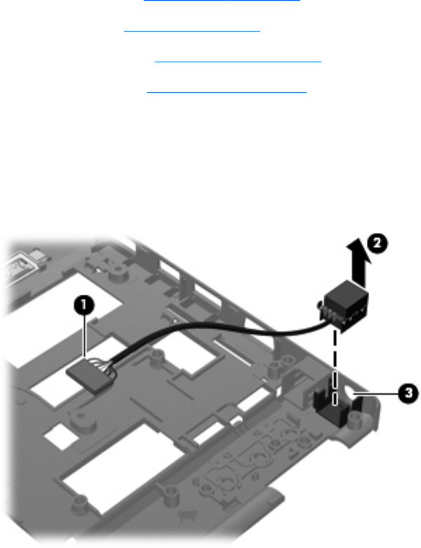 3. Remove the power connector (2) from the clip (3) built into the top cover.