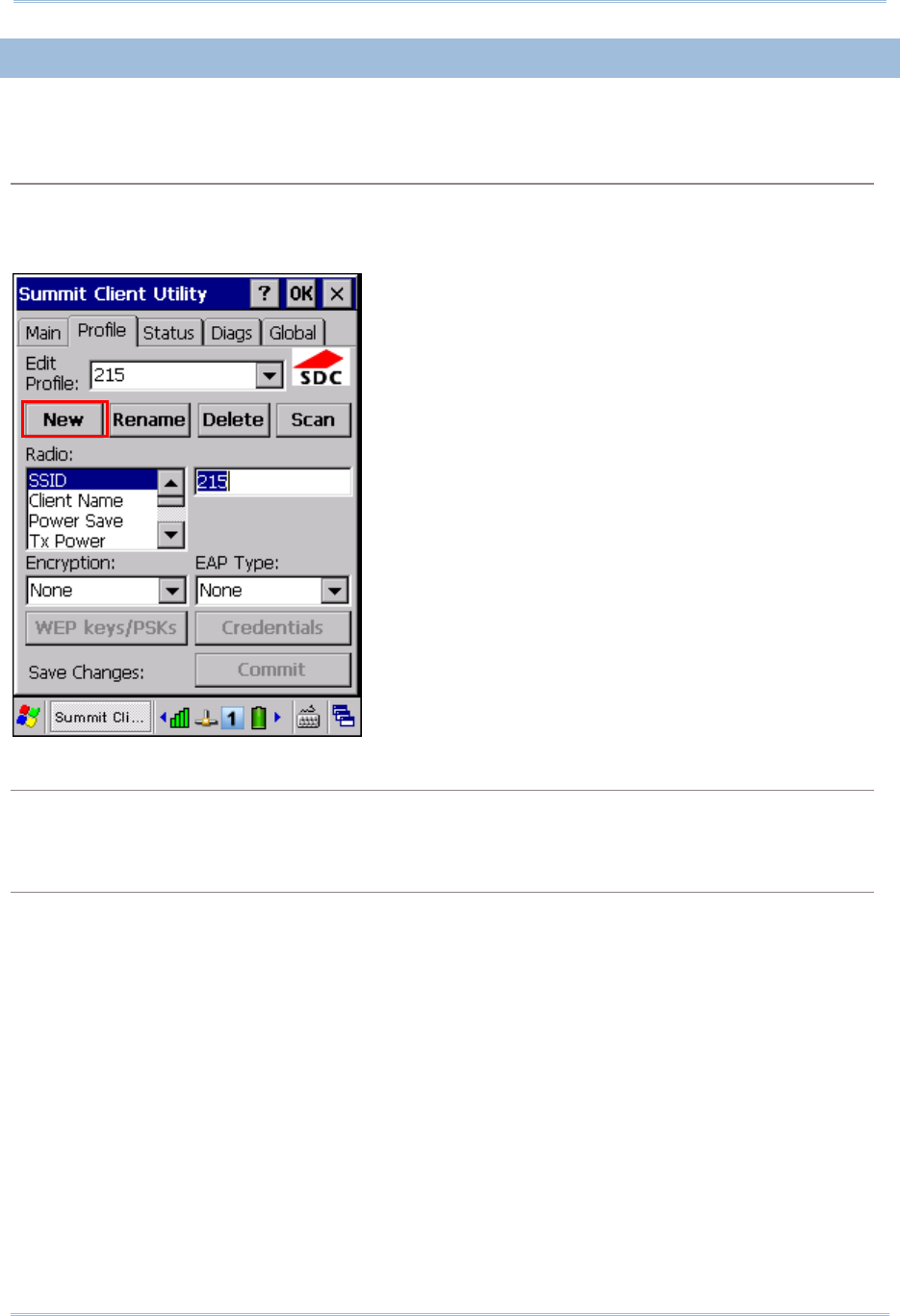 Tap [New] and enter a unique name for this profile. Up to 32 characters are allowed. Configure