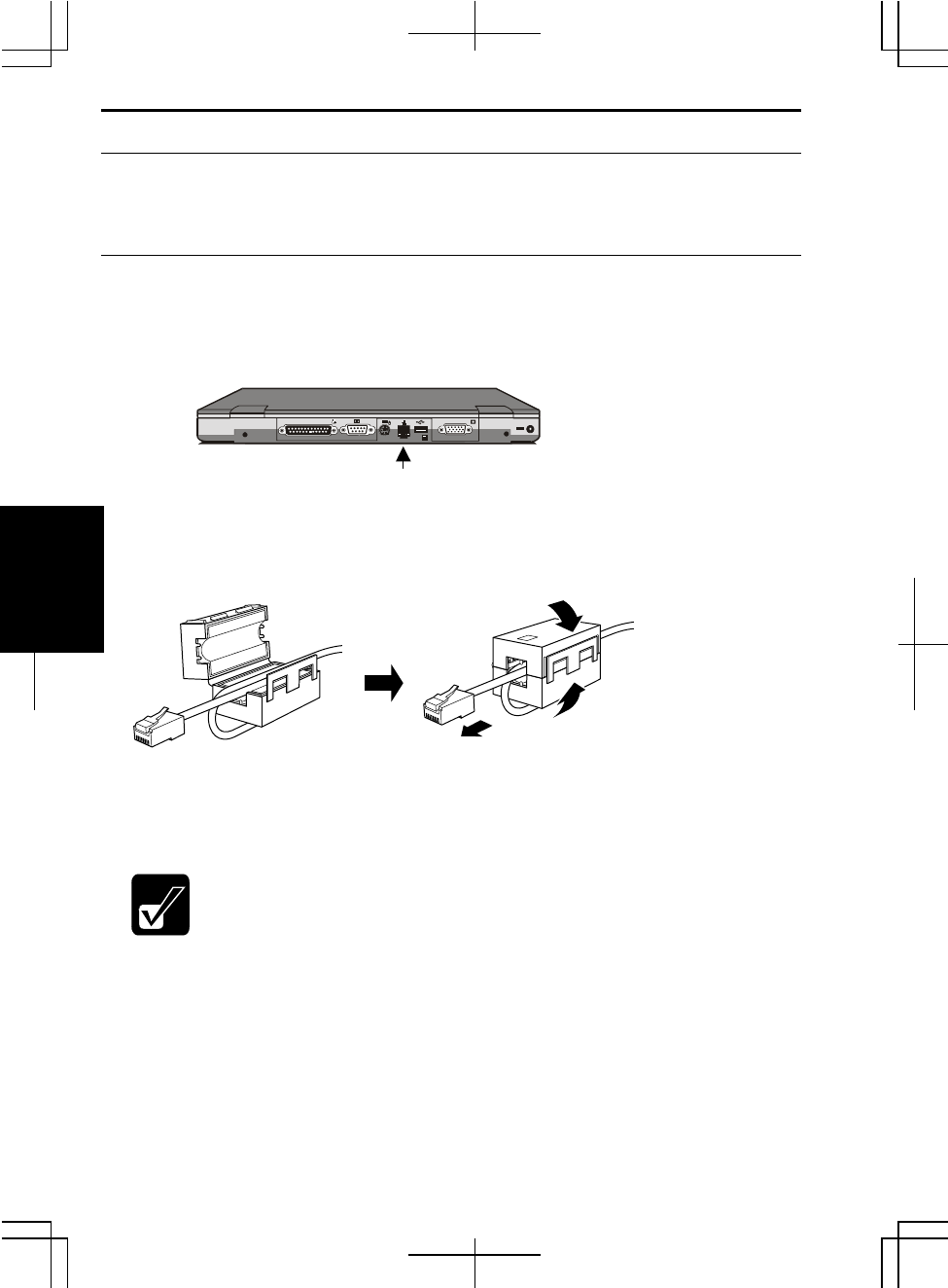 4. Attach the provided core to one end of your LAN cable. Insert the cable into the