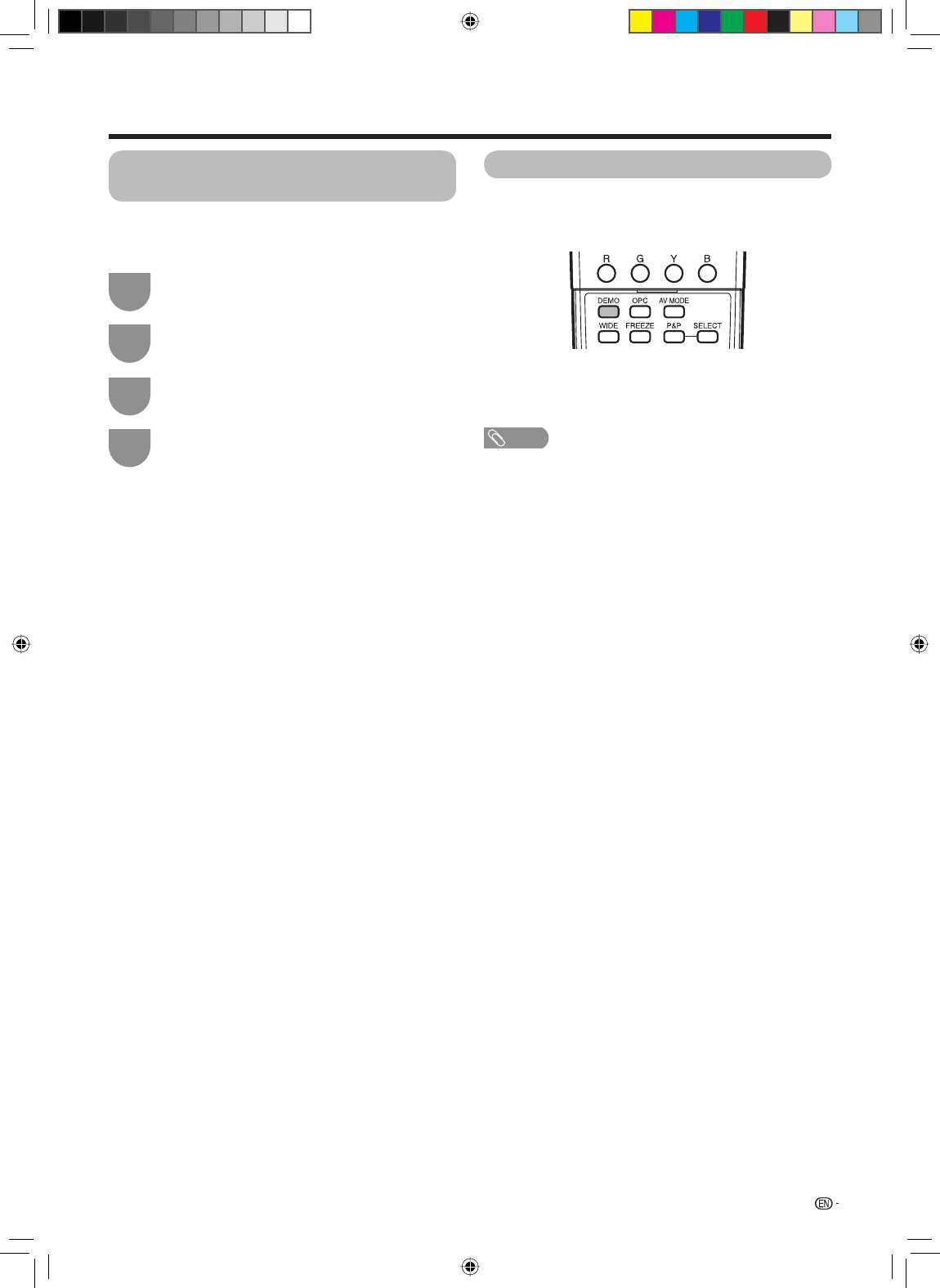 Press DEMO on the remote control unit to show Fine