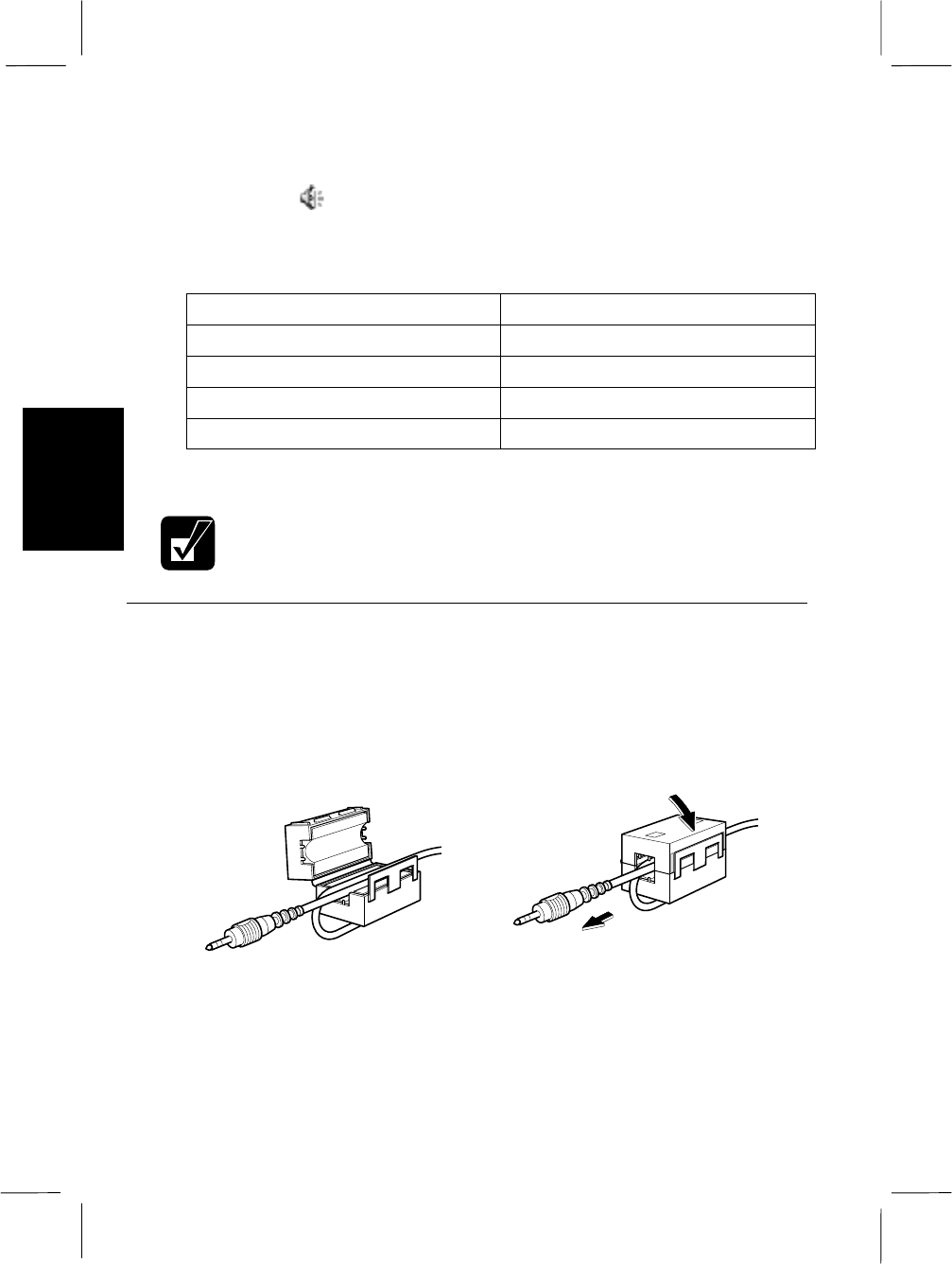 Attach the provided core to one end of an audio cable. Insert the cable into the