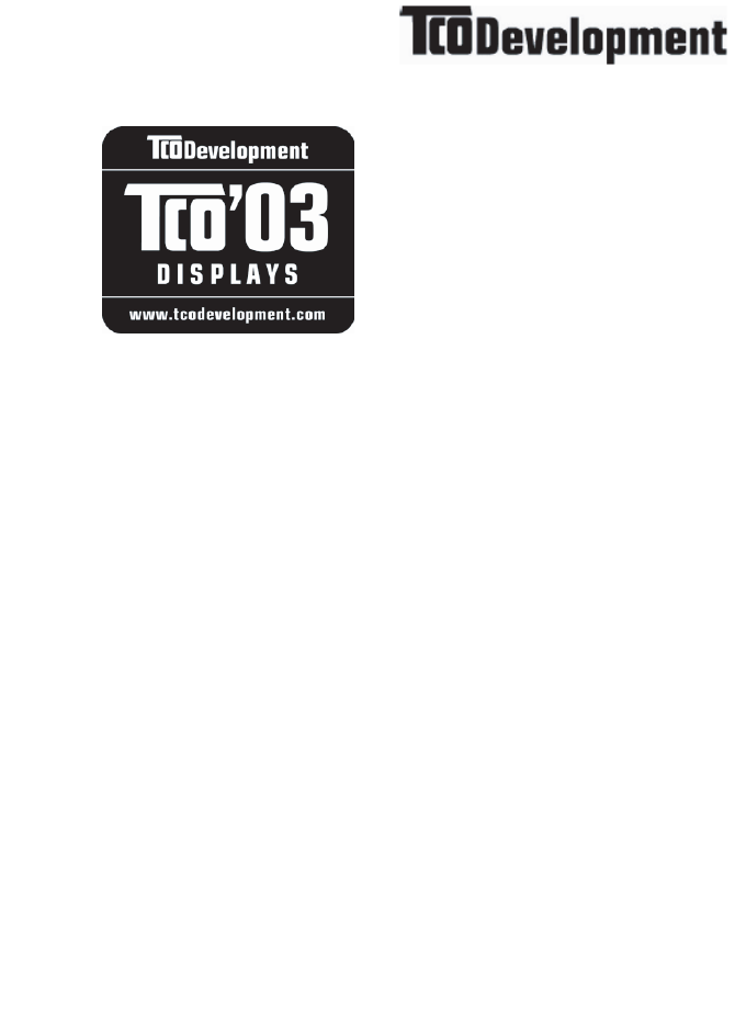 The display you have just purchased carries the TCO'03 Displays