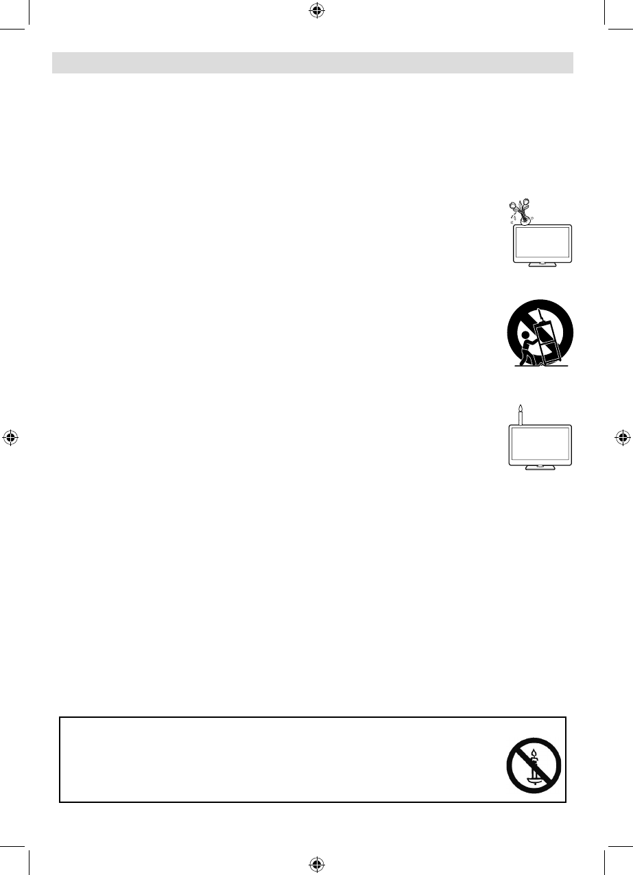 To prevent fi re, never place any type of candle or naked fl ames on the top or near the TV •