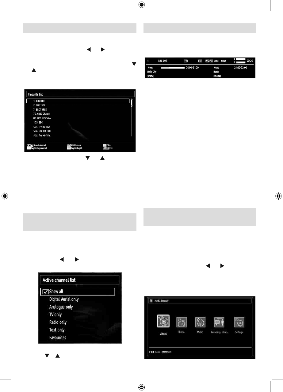 You can set various channels as favourites so that •