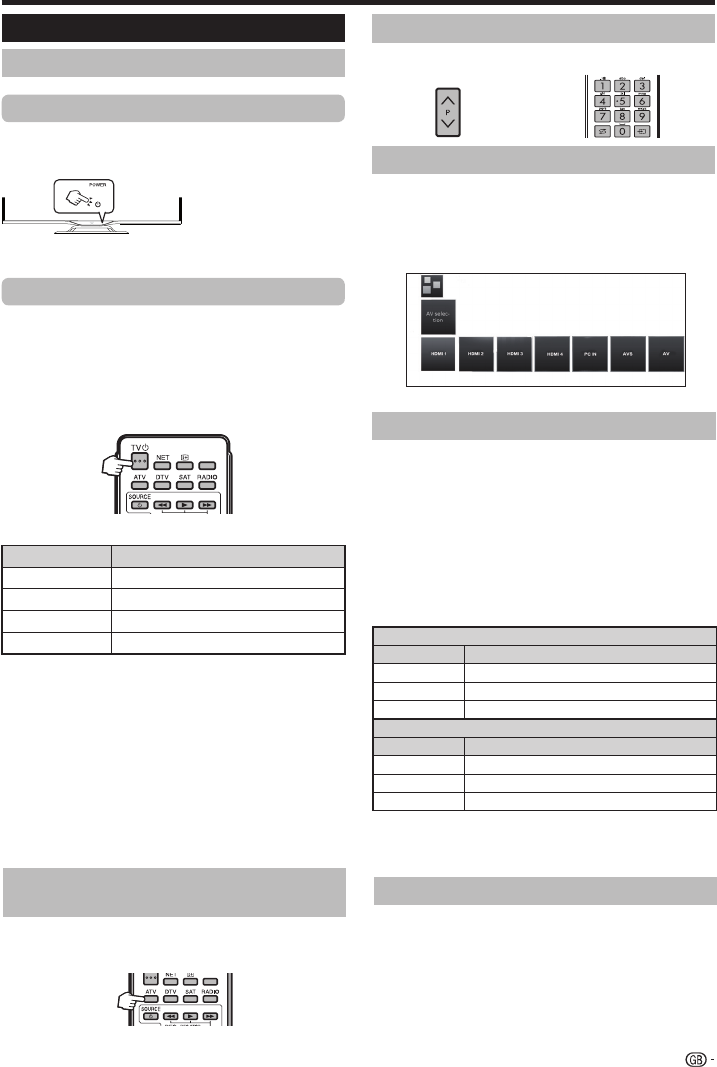 E Press “ATV”, “DTV”, "SAT" or "RADIO" to