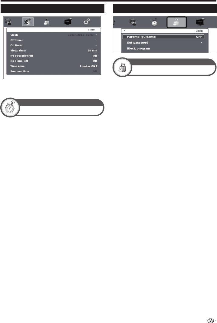 following functions: Clock, Off/On Timer and Sleep
