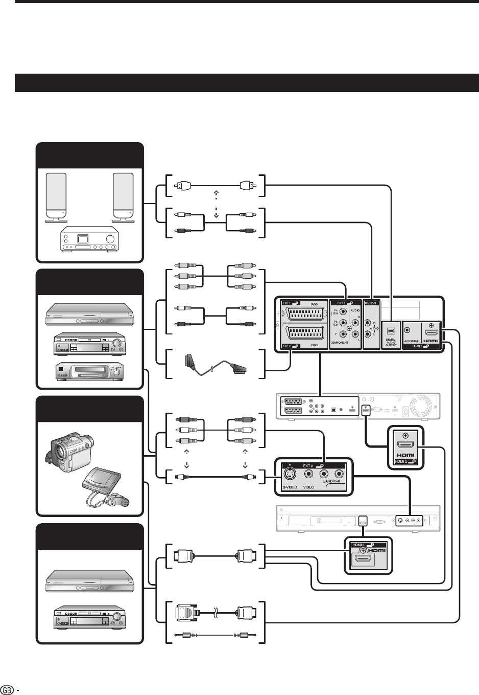 Carefully read the operation manual of each external device for possible connection types. This also helps you get the best