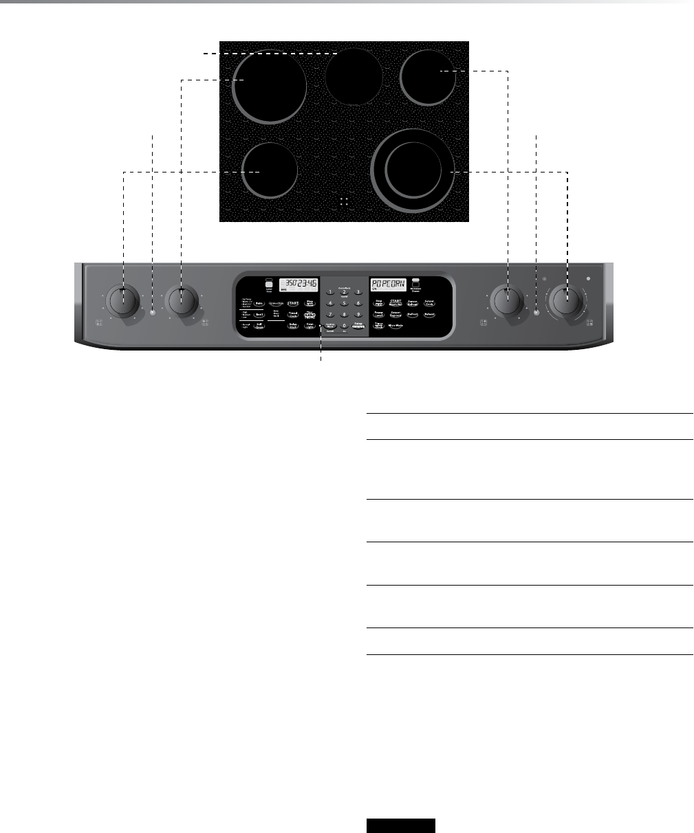 Surface units are turned on and adjusted using the control knobs.