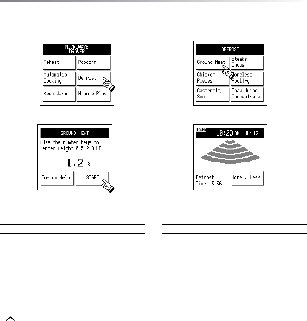 1 Touch Defrost pad. 2 Touch Ground Meat pad.