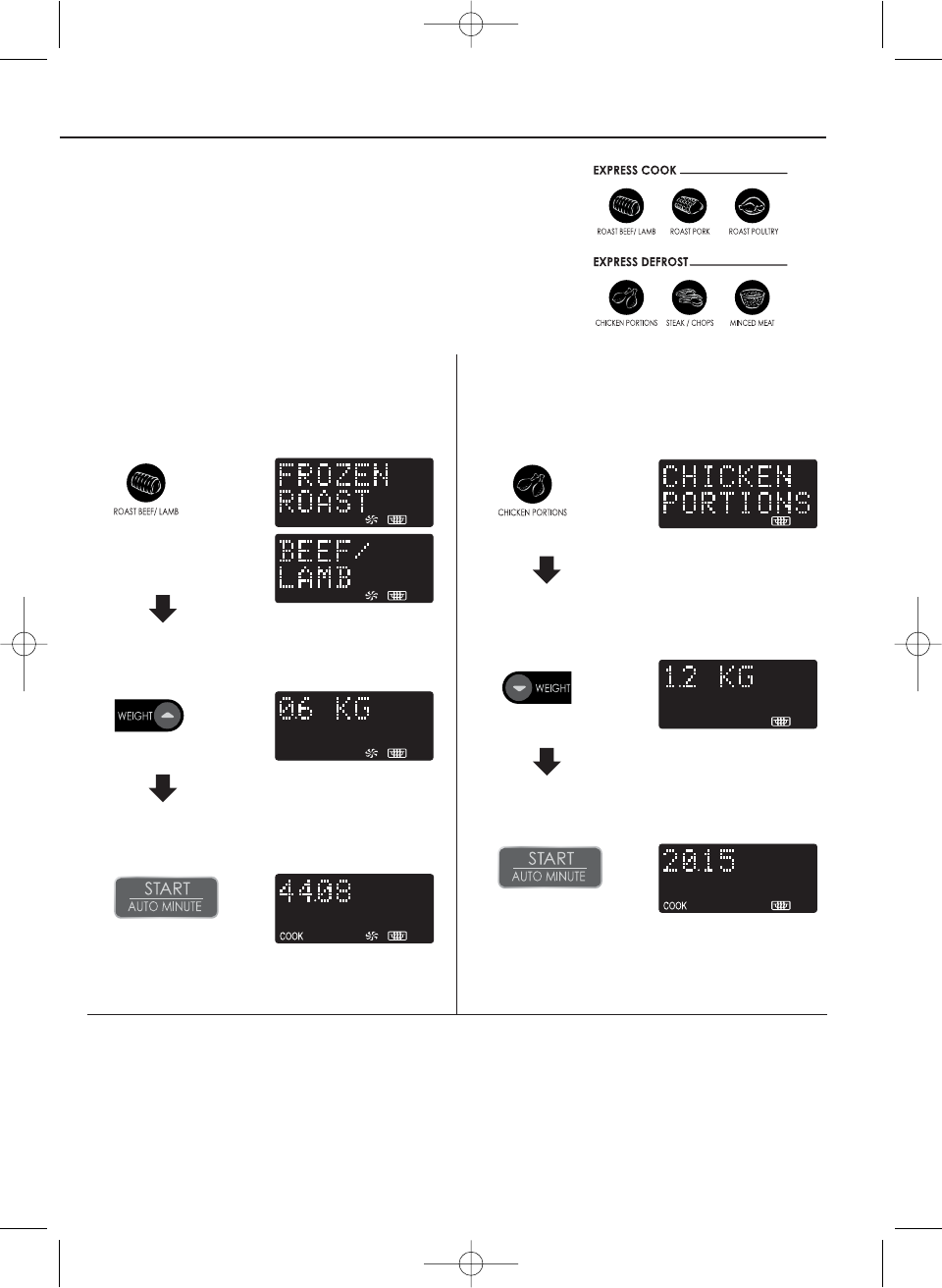 EXPRESS DEFROST enables you to defrost 3 popular menus.