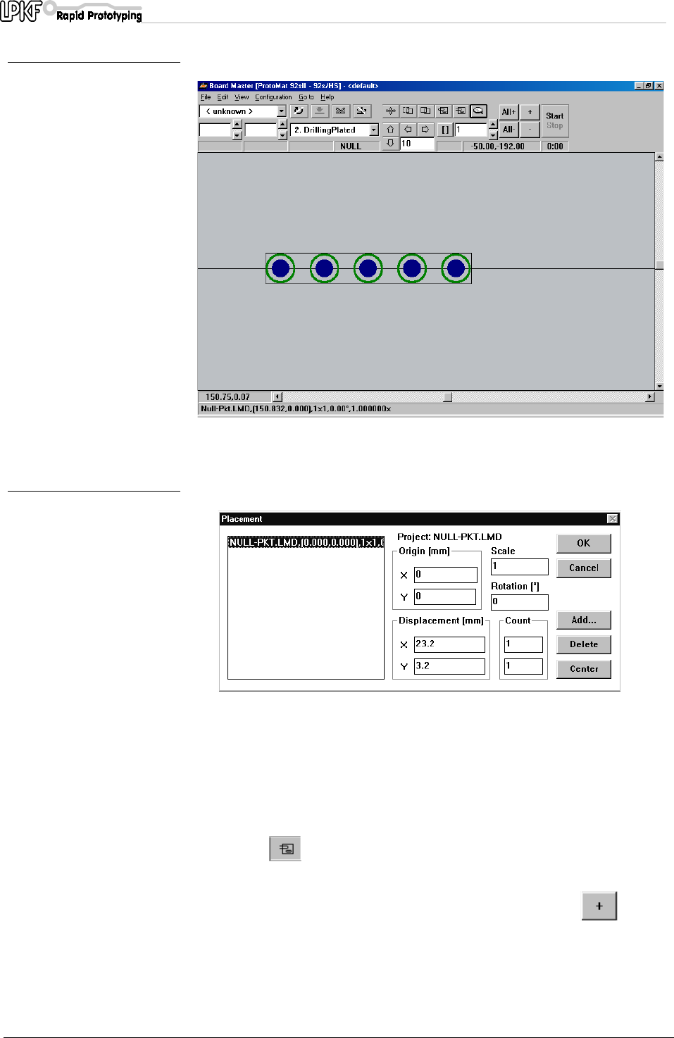 The PLACEMENT dialogue box opens. Specify the position in the