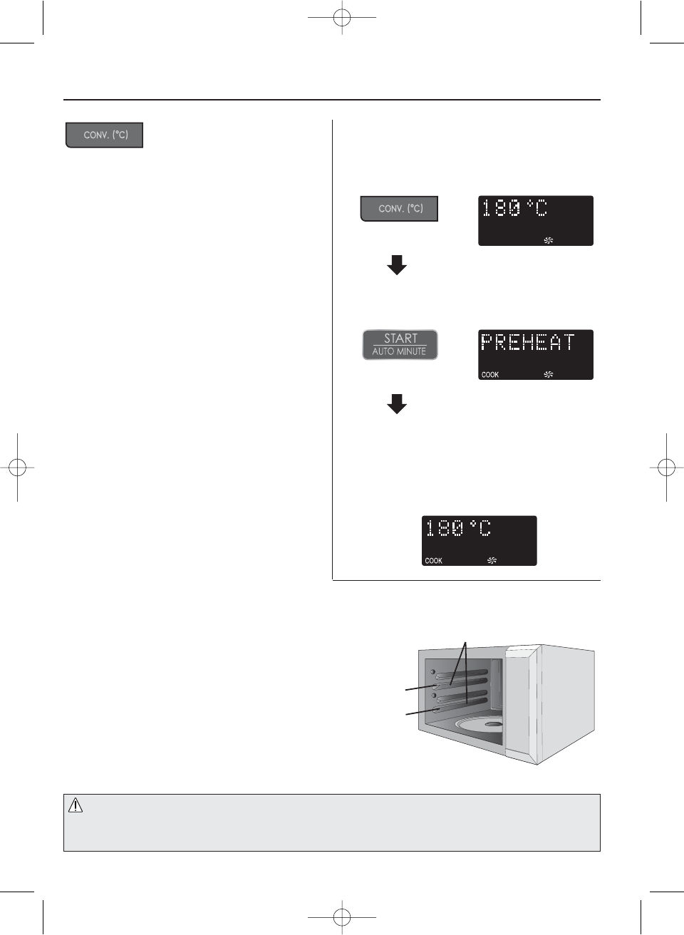 The door, outer cabinet, oven cavity, accessories and dises will become very hot during