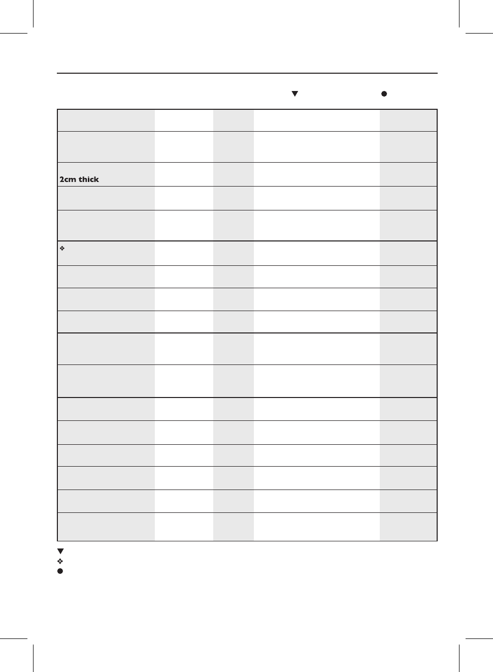 DEFROSTING CHART