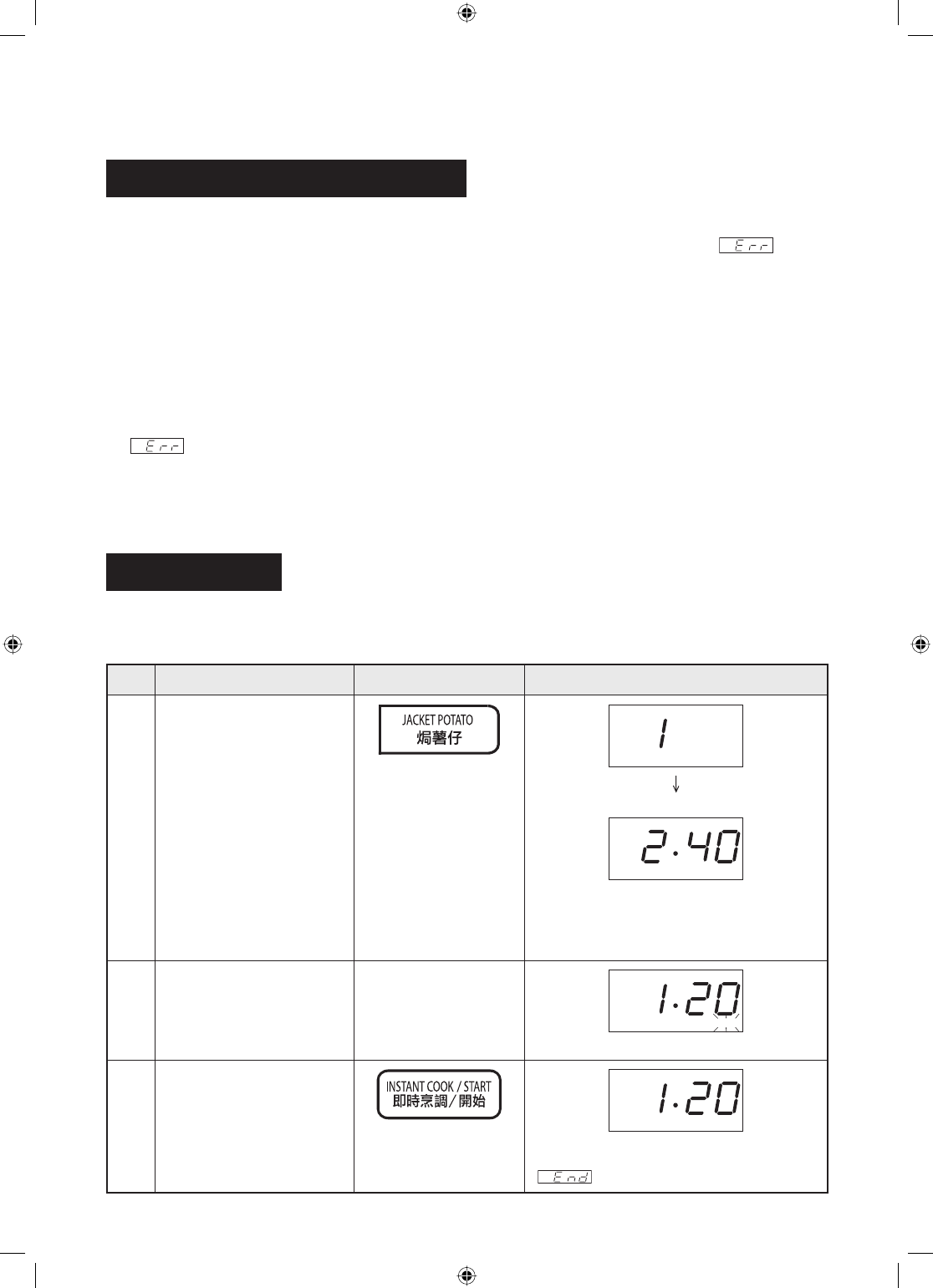 4. The fi nal cooking result will vary according to the food condition (e.g.initial temperature, shape,