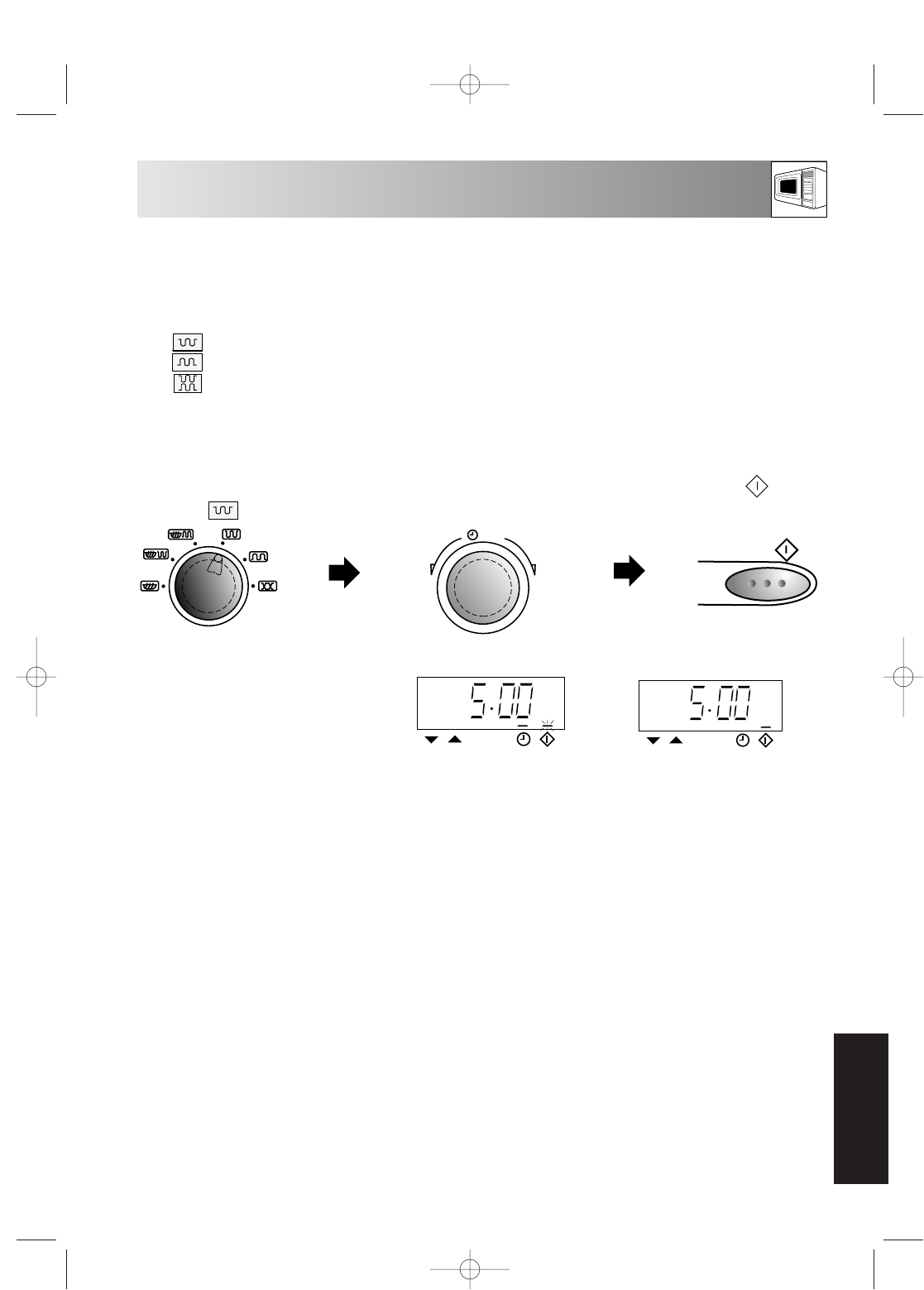 Suppose you want to cook cheese on toast for 5 minutes using the top grill only: (place toast on the rack).