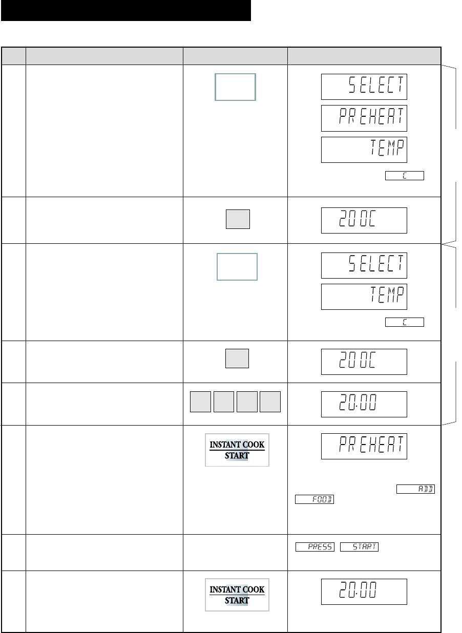 * Suppose you want to preheat the oven to 200°C then cook for 20 minutes at 200°C.