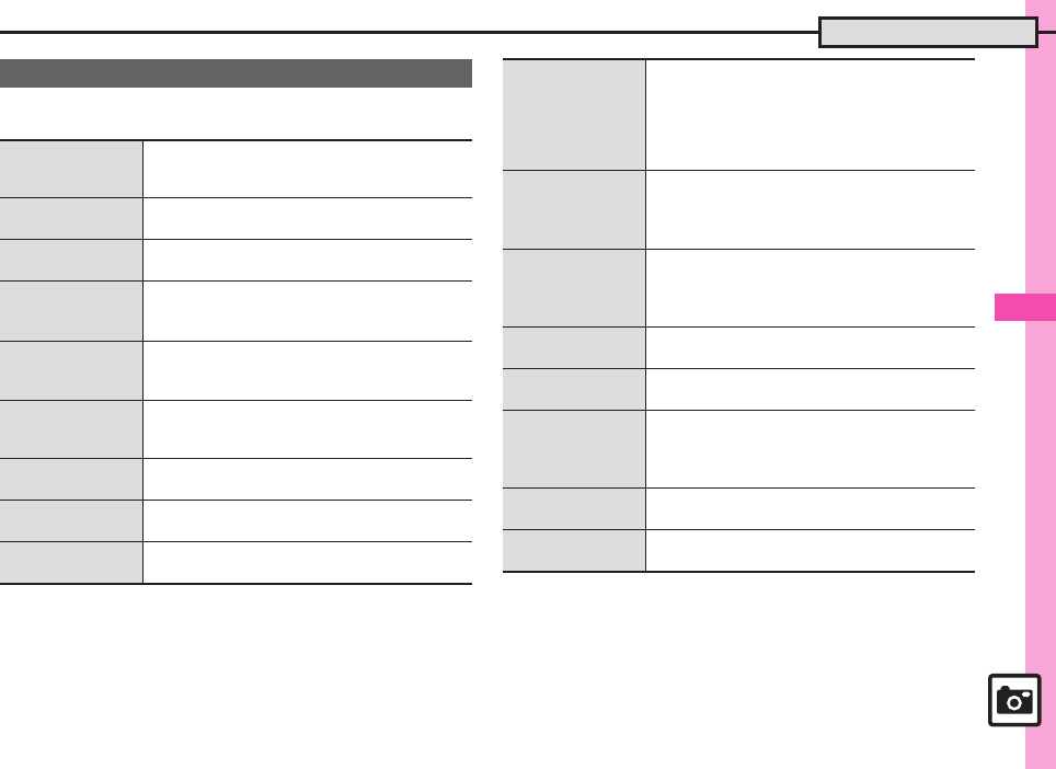 . Selectable item depends on camera mode.