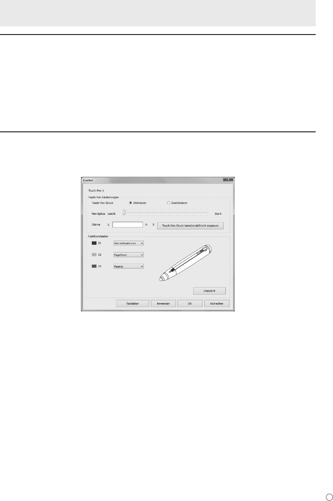 Sie können einstellen, ab welchem Touch-Pen-Druckniveau das Touch-Panel den Pen erkennen soll.