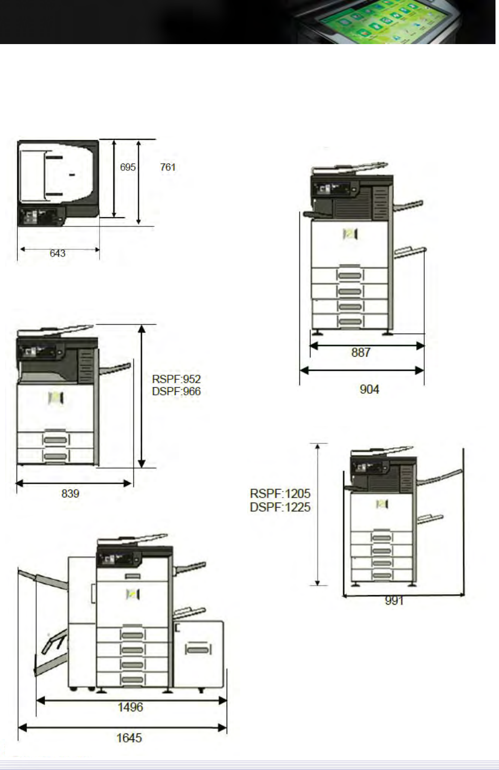 <When right exit tray is installed.>